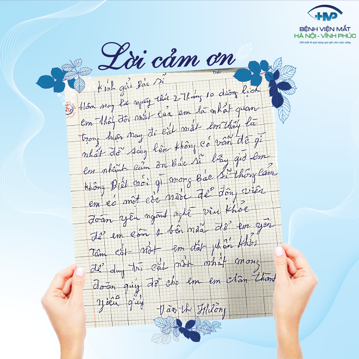 LỜI CẢM ƠN TỪ NGƯỜI BỆNH SAU KHI PHẪU THUẬT MỘNG MẮT